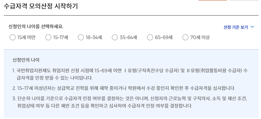 유형별 지급되는 수당의 차이가 있으니 수급자격 모의산정을 통해 사전에 확인해 볼 수 있습니다