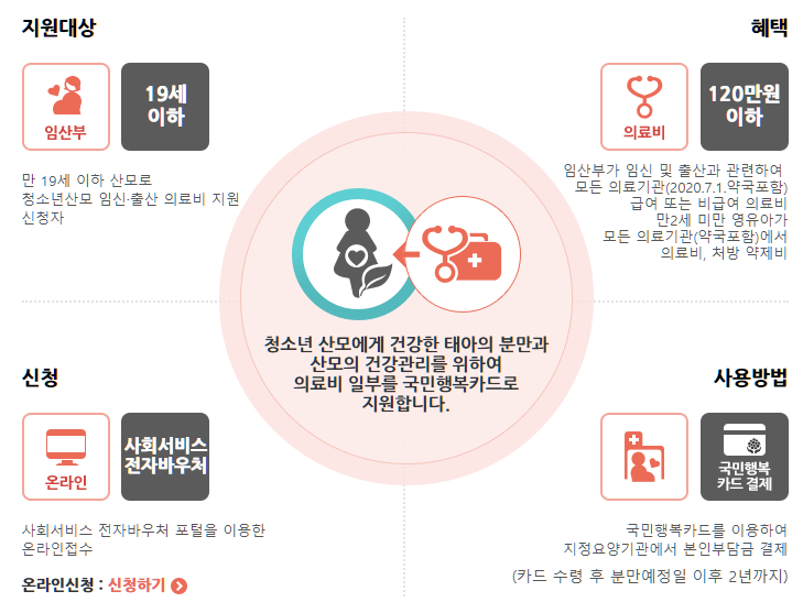국민행복카드를 발급받은 후에는 바우처 서비스를 별도로 신청해야 합니다. 국가 바우처는 그 혜택과 운영기관이 다양한 만큼 신청방법에도 차이가 있습니다. 바우처 서비스에는 건강보험 진료비 지원, 청소년 의료비 지원, 산모 및 신생아 건강관리 지원, 기저귀, 조제분유 지원, 에너지바우처 지원, 아이 돌봄 서비스 지원, 여성청소년 생리대 바우처 지원까지 다양하게 지원되는데 자신이 받을 수 있는 국가 바우처 서비스가 어떻게 되는지 바로 조회할 수 있습니다.