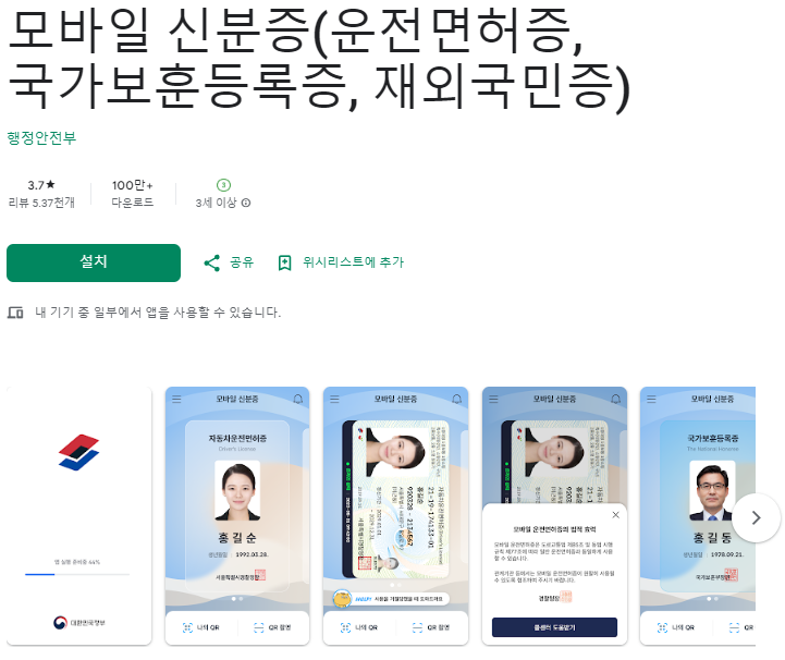모바일 운전면허증 발급을 위한 두 번째는 모바일 신분증 앱을 설치해야 합니다. 안드로이드폰과 아이폰의 앱이 다르기 때문에 자신이 사용하는 기종에 따라 앱을 설치하면 됩니다. 앱 설치 후 절차에 따라 본인인증까지 마치게 되면 모바일 운전면허증을 발급받을 수 있습니다.